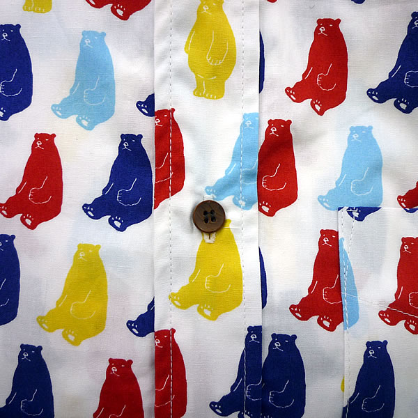 鮮やかなプリントの衣櫻半袖シャツ「クマ」。