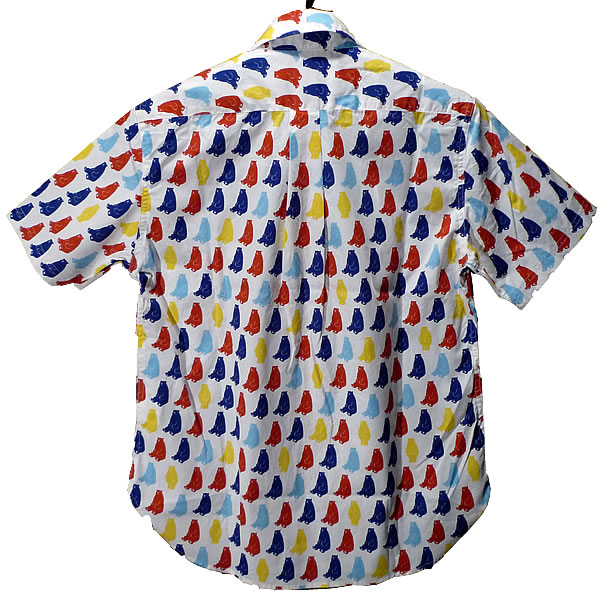 - クマちゃん柄のレギュラー襟の半袖シャツ