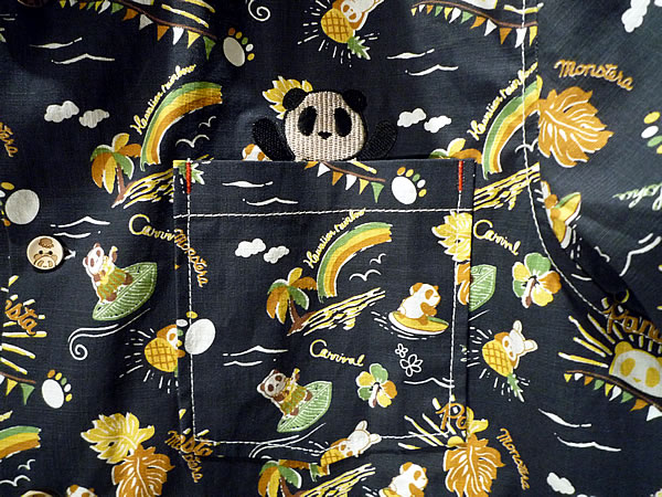 - 胸ポケットポケットから顔を出したパンダ刺繍。ポリウレタン混紡素材でストレッチが効いて快適。