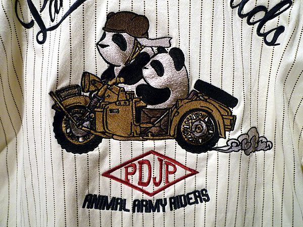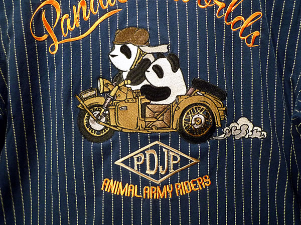 バック刺繍のミリタリーモチーフパンダシャツ
