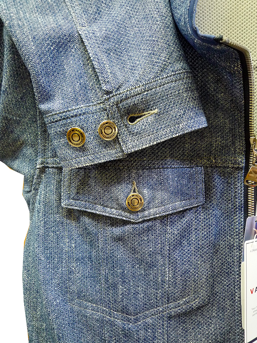 ヴァジエ - VAGIIE - ジージャン風軽量ブルゾン 2020/4/19 新着情報 ウォッシュデニム風素材のブルゾン。 デニム調で軽量の春らしいカラーと清涼感。肌触りがよく吸汗速乾素材の東レエバレット使用。 ポケットの上にヴァジエらしいワッペン。 両胸フラップポケット 左側に内ポケット。裏地のメッシュ素材は肌触りがソフト。 ブランド VAGIIE サイズ 46,48,50 カラー ブルー 素材 ポリエステル 金額(税別) ¥39,000 その他